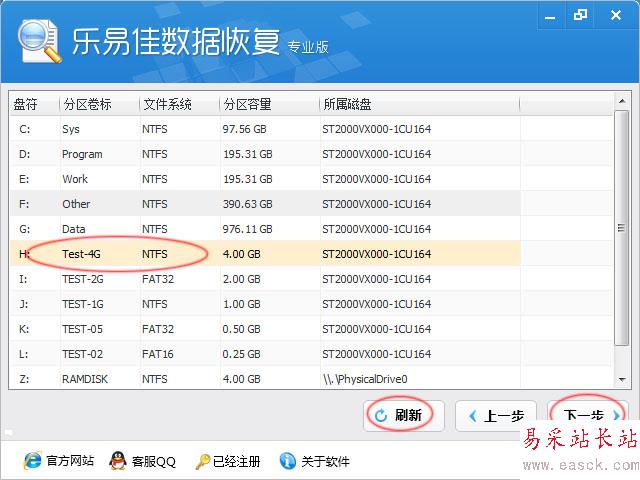 鼠標左鍵點擊您要恢復文件的分區,然后點擊"下一步"按鈕。