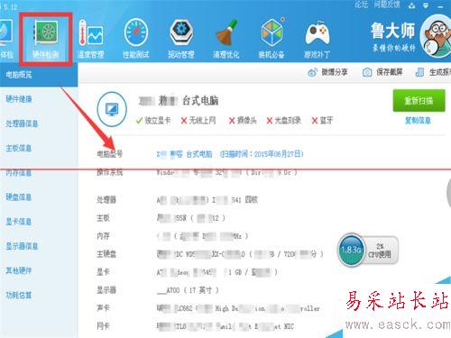 4、硬件檢測,所有電腦硬件信息都很清楚的分布在下圖中。