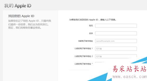 2點擊官網首頁右下角的【找回您的apple id】選項,進入密碼找回界面,如下圖所示。