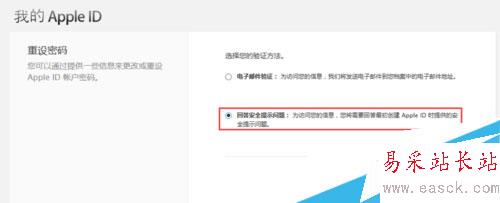 在選擇驗證方式界面里也可以選擇【回答安全提示問題】來獲取重新設置密碼的權利,如下圖所示。