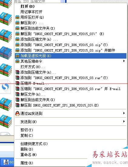 2、右擊iso文件,選擇“加載至虛擬光驅(qū)”。