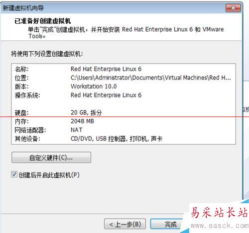 5、接下來點擊“下一步”,配置安裝路徑,到最后,它會出現(xiàn)如下圖示的對話框,點擊“完成”,它就會自動安裝虛擬機了。