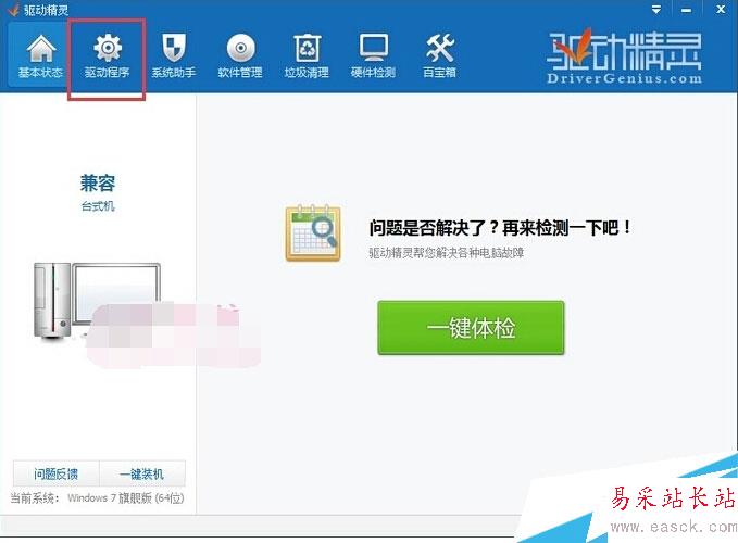下載最新版本的驅(qū)動精靈,進入界面后,選擇驅(qū)動管理,卸載原有的聲卡驅(qū)動,在重新進行檢測安裝即可。