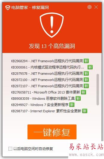 電腦管家團隊經過反復測試多次驗證,保證了漏洞修復功能的可靠性和穩定性,請廣大用戶放心修復。