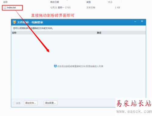 6、也可以把要粉碎的文件直接拖動到粉碎界面即可。