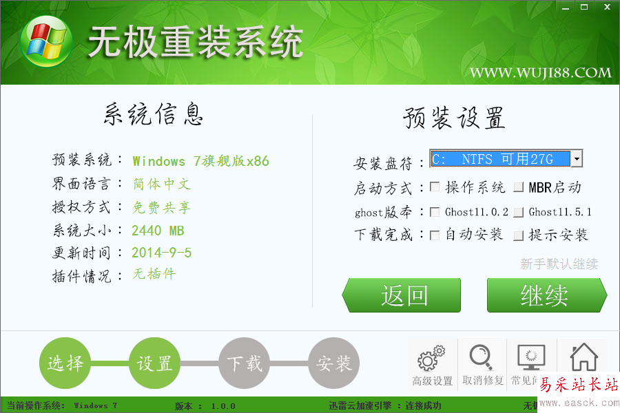 前面只需手動選擇預裝系統(tǒng),剩下步驟的軟件將會自動完成。