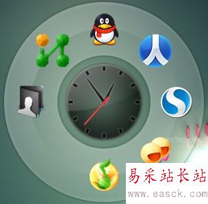 這個就是上圖中圓形面板的效果,里面可以任意添加快捷方式,還可以設成兩層圈,最中心的鬧鐘圖標還可以自行設置成更多個性的圖片。。