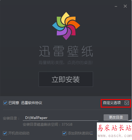 運(yùn)行迅雷壁紙安裝程序,可自定義安裝目錄