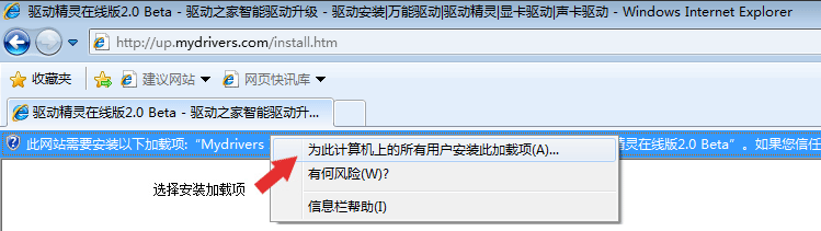 如果沒有安裝此控件,驅動精靈在線版無法在計算機上正確顯示。要安裝控件,請執行以下操作: