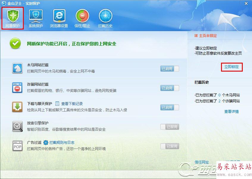 (提示:如果您想解除鎖定的主頁,請使用金山衛士或金山毒霸修改