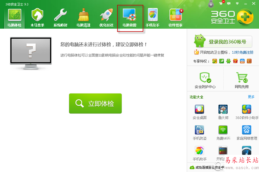 1、打開360安全衛士,找到電腦救援如下圖所示: