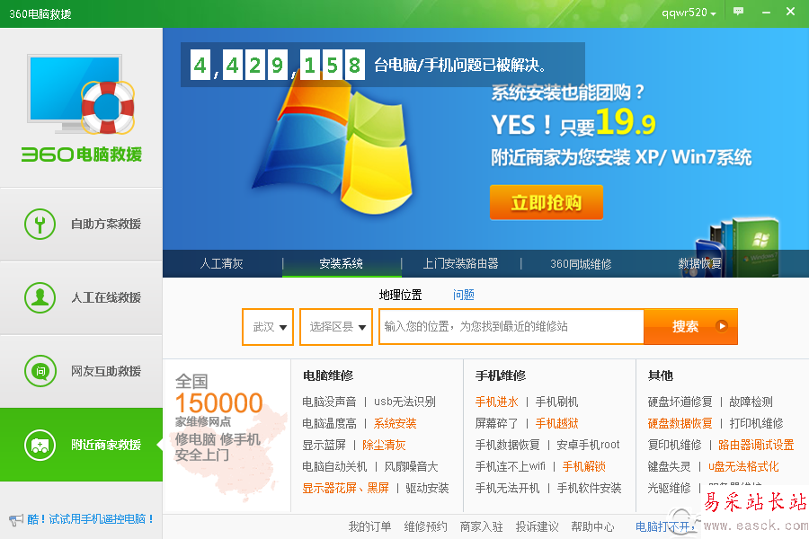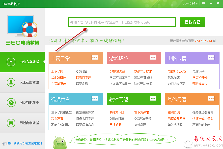 360電腦專家通過互聯網人工遠程一對一模式,為廣大網民提供系統與軟件維護服務,如病毒查殺、系統設置、疑難故障解決、數據恢復等!已有7000多個解決各類電腦問題的工具和教程,用戶只需點一個按鈕就能使電腦恢復正常,方便、實用、高效,從真正意義上實現了足不出戶免費修電腦!