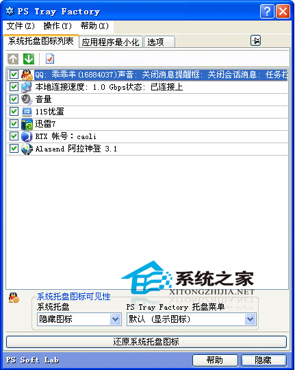 右下角圖標隱藏工具 2.5.2綠色版——可以隱藏你任務欄右下角的圖標,以及對右下角的圖標進行排序。