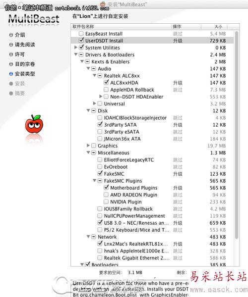安裝驅動是最后也是最重要的一步,因為沒有驅動,也沒有完整的Mac OS X Lion體驗。這里需要借助的是MultiBeast。