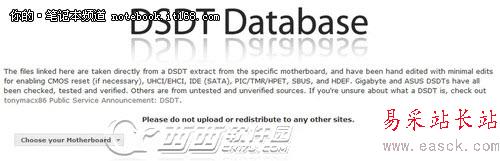 ▲臺式電腦可以先到網站上下載主板對應的DSDT文件,筆記本就需要自己注意選擇了