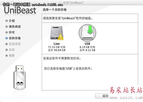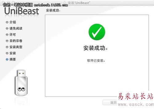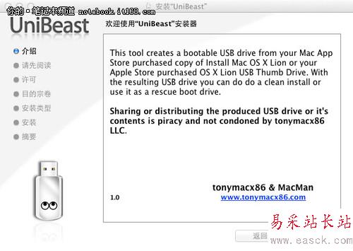 格式化完畢后,運行UniBeast軟件來制作黑蘋果安裝盤。