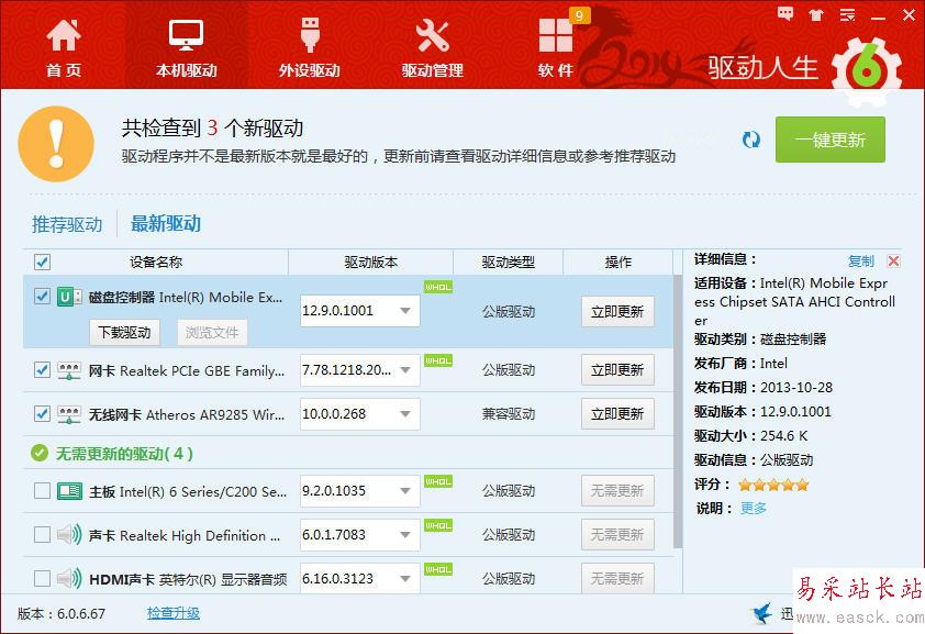 驅動人生6有一鍵更新驅動程序的功能,但由于某些驅動程序在更新完成之后會需要重啟電腦,這樣就會導致一鍵更新無法完成,也可能會使電腦出現一些問題。因此選擇手動更新驅動比較保險,這樣就衍生另外一個問題,這么多驅動程序,我先更新哪個?按照什么順序來?小編在此告訴大家,更新驅動程序可以按照如下順序來更新,依次為主板芯片組驅動(有些筆記本的芯片組驅動是集成在顯卡驅動中的,可以直接安裝顯卡驅動)、顯卡驅動、聲卡驅動、網卡驅動(包括以太網卡驅動和無線網卡驅動)、觸摸板驅動、快捷鍵驅動、讀卡器驅動、藍牙驅動、內置攝像頭驅動。按照這個順序來更新驅動程序,電腦就不會由于操作失誤而出現問題了。