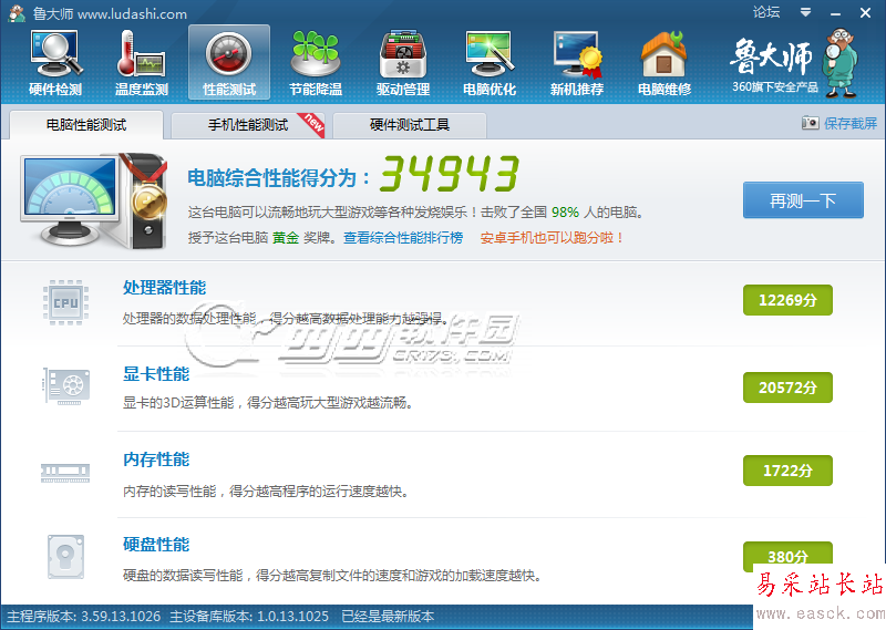 不過魯大師的跑分只是作為娛樂看看,小編的電腦能跑出34000分你怎么看(這絕逼是作弊?。?。