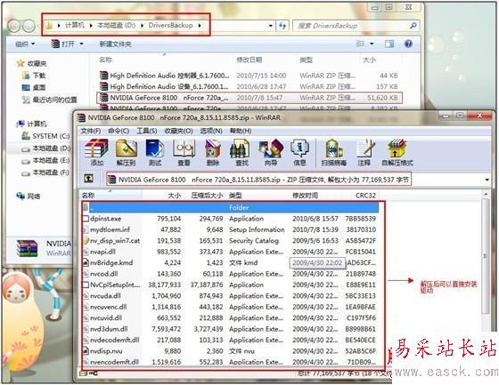 打開驅動備份看到驅動人生的備份文件由之前09版的dtl格式,變為了大家皆可看到的rar格式。