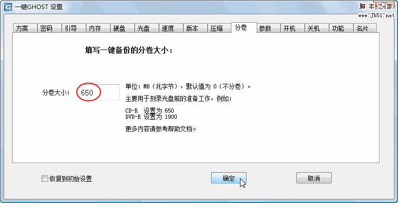 1、準備:使用WINDOWS下運行一鍵GHOST硬盤版->設置->壓縮、分卷