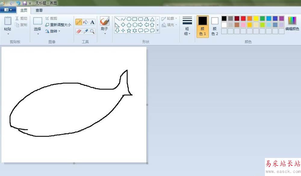 2、身體:點擊“鉛筆”按鈕,線條粗細(第三個),先畫出鯊魚的身體部位。