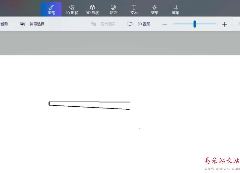 1、首先用直線工具畫(huà)上兩條線,一端頂部比較細(xì),一端比較粗,這是槍口部分;
