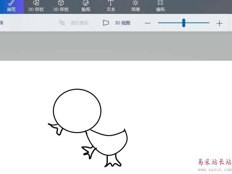 3、用鉛筆工具畫上小鴨子的嘴巴,手和腳,手和腳都可以簡化;
