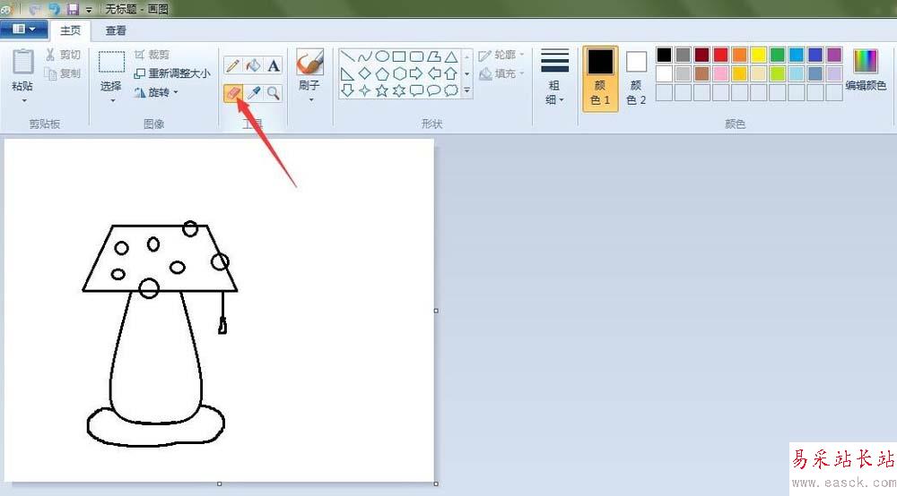 5、添加裝飾:點擊“橢圓形”按鈕,在燈罩上畫上一些圓;點擊“橡皮擦”按鈕,將畫出的圓擦掉。