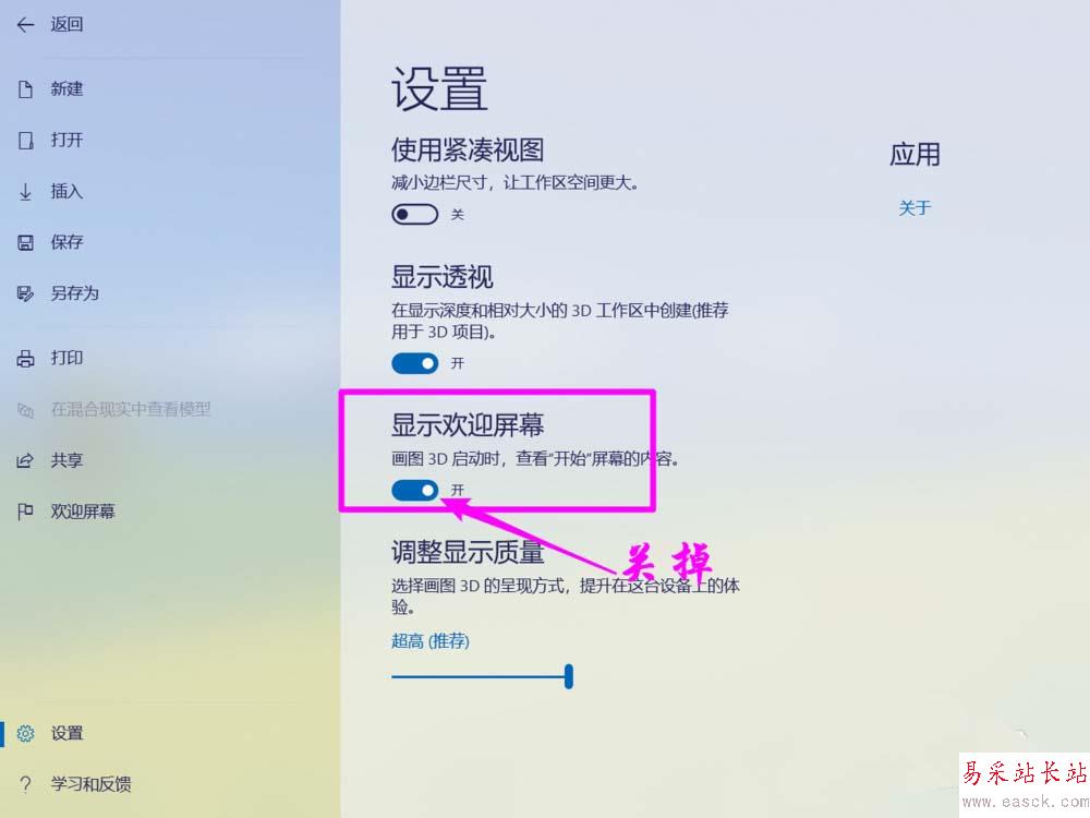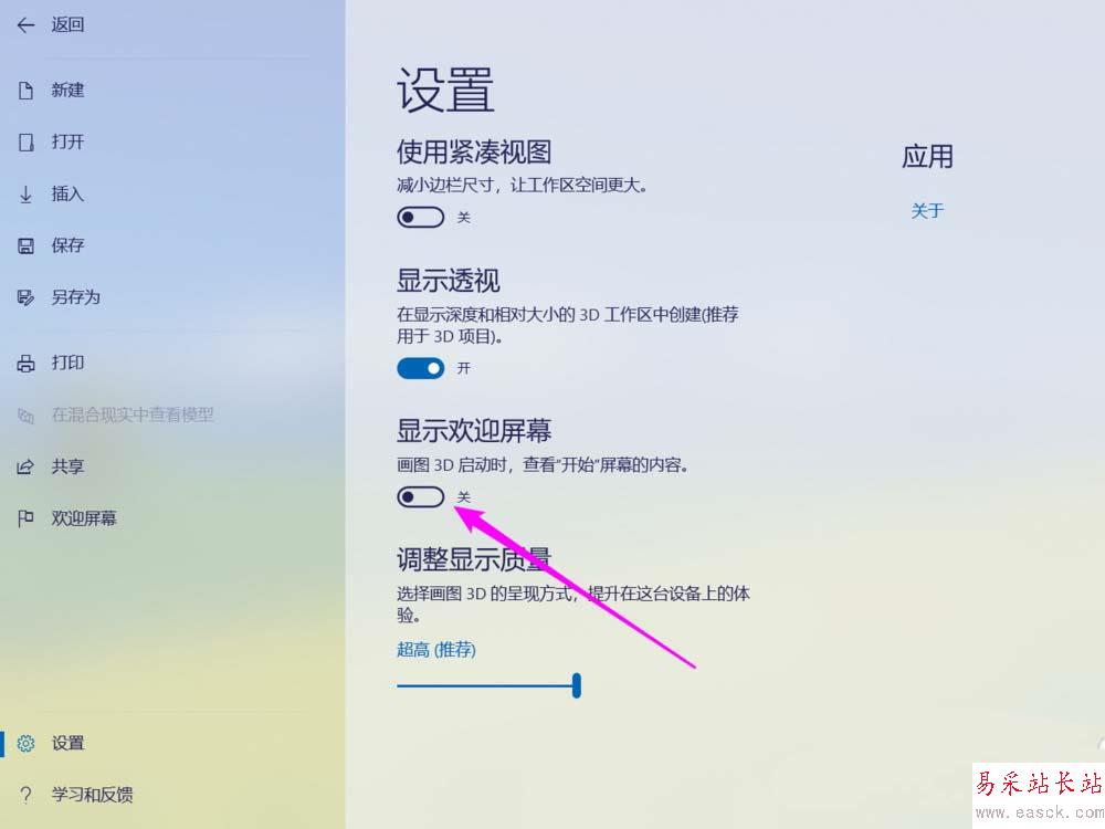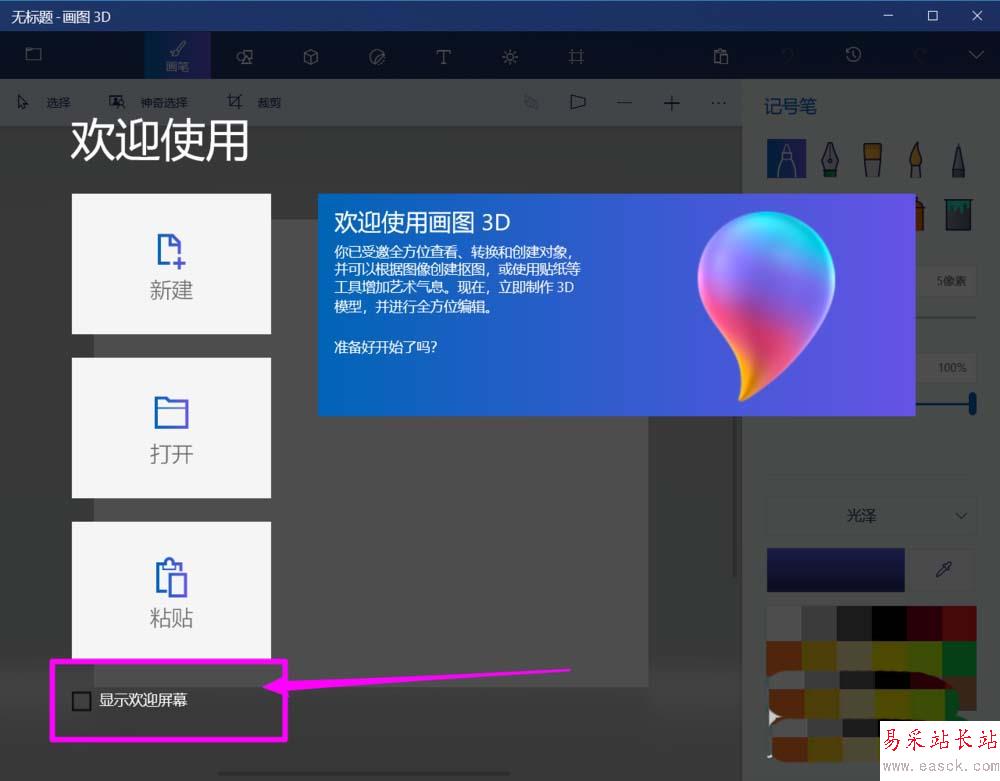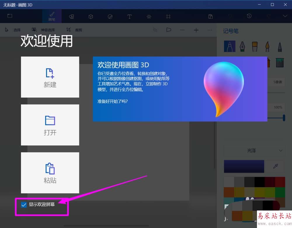 win10自帶的paint3d畫圖工具打開就顯示歡迎屏幕,每次都會顯示,該怎么不顯示呢?下面我們就來看看詳細的教程。