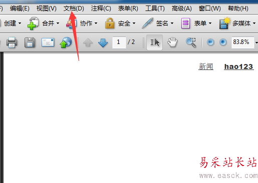 2、進入到了的Adobe Acrobat的文件當中,點擊 文檔 的菜單。