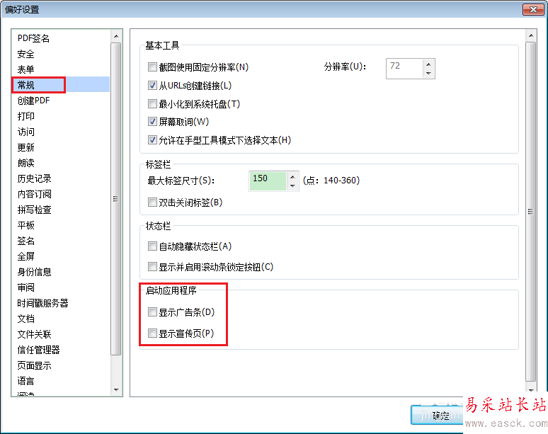 2、點擊“常規”選項,然后將“顯示廣告條”和“顯示宣傳頁”前面的√(勾號)去掉。