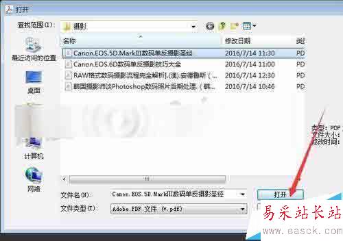 2、在打開的Adobe Acrobat軟件中,點擊打開按鈕,并定位到下載的文件的,打開