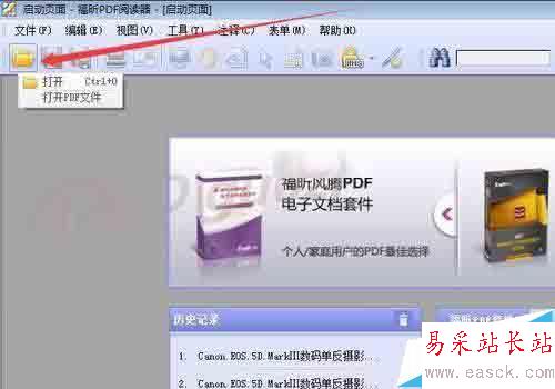 5、在打開的Foxit Reader軟件界面,點擊打開按鈕