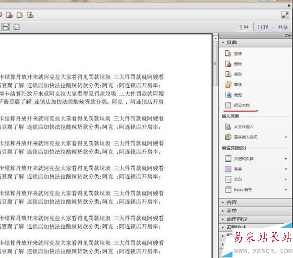 3、然后選擇拆分文檔按鈕,如下圖所示:
