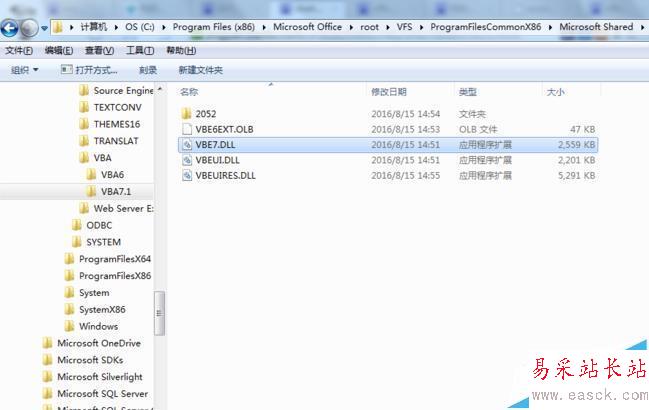 5、再將VBA7.1文件夾中的VBE7.DLL復制到VBA6文件夾中。