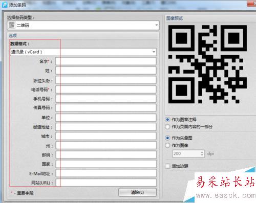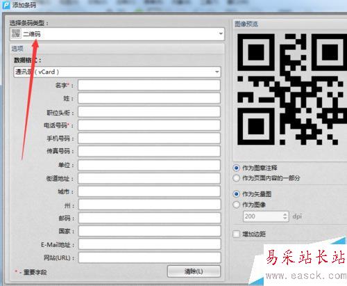 5、選擇好二維碼后,我們在選項(xiàng)中輸入二維碼要顯示的內(nèi)容,姓名和電話等內(nèi)容。可以在右側(cè)預(yù)覽效果中看到二維碼的效果。