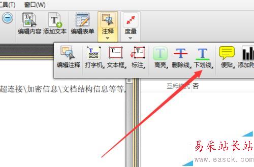 2、然后,我們在打開的PDF編輯器中的工具欄中找到注釋工具,鼠標左鍵點擊注釋工具,在注釋下拉工具欄中點擊下劃線工具。