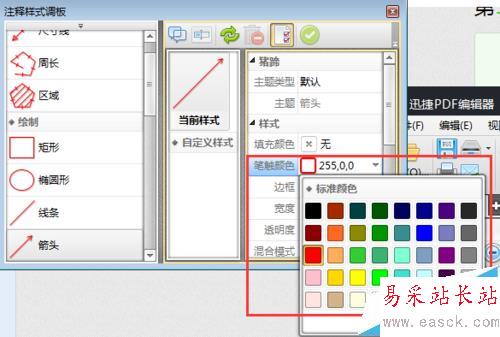3、點擊完PDF文件編輯器的箭頭工具后,可以在PDF文件頁面的右側彈出箭頭工具屬性的頁面,我們可以在其他隊箭頭的樣式等進行設置。