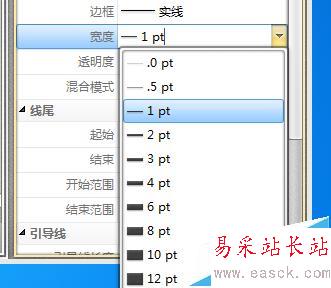 5、對箭頭的寬度設定中,我們可以看到如圖所示的寬度設定里很大范圍供我們選擇。一般選擇默認寬度就可以了。