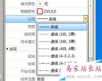 6、在對箭頭的邊框設定中,是我們看到的箭頭樣子的設定。可以用虛線或者是實線來顯示箭頭的樣子。如圖所示: