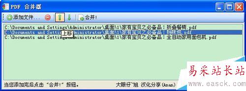 5、可以通過(guò)“上移”和“下移”按鈕調(diào)整pdf文件的順序,這個(gè)順序就是最終生成的pdf文件中內(nèi)容的先后順序。