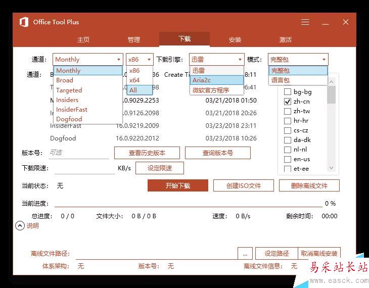 從微軟官方服務器下載軟件安裝包,所有的文件均來自微軟官方公開下載鏈接。Office 擁有不同通道的版本,在 OTP 里,你可以一覽各通道信息,隨心下載。同時 OTP 還內置三個下載引擎,為下載提供更多選擇。下載后,你還可以使用 OTP 將離線文件打包為 ISO 鏡像文件,方便在離線時安裝、分享與保存。