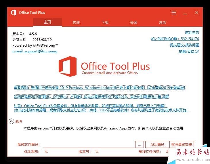 此工具幫助用戶簡化 Microsoft Office 系列軟件的安裝流程,同時優化部分設置無需用戶后期手動更改。支持通過高速下載引擎從微軟下載 Office 365 離線安裝包并支持企業 IT 管理員利用離線安裝包批量部署等。