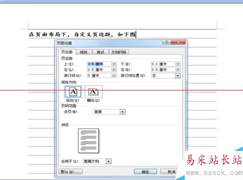 7、設置好后點擊應用,確認后發現打好的字不在格線之內。這時要調整頁邊距。上下左右全調為2.5厘米即可。