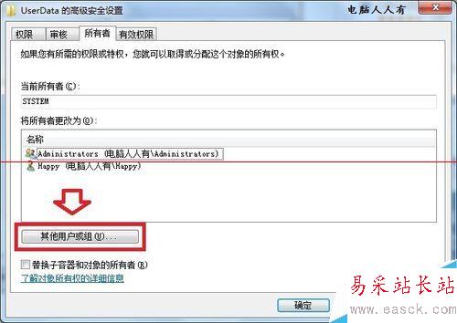 7、此時會再次彈出UserData 的權限界面,默認此賬戶下的允許是沒有權限的。
