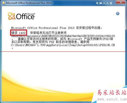 Office各個版本的安裝過程中,幾乎都會出現錯誤1402,一般這是電腦用戶的權限不夠所致。