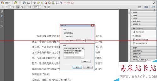3、此時(shí)會(huì)彈出【識(shí)別文本】的對(duì)話框,這是你可以選擇識(shí)別【所以頁(yè)面(A)】或者【當(dāng)前頁(yè)面(C)】,也可以指定要識(shí)別的頁(yè)面,設(shè)置完成之后,可以點(diǎn)擊【確定】,軟件會(huì)自動(dòng)對(duì)頁(yè)面進(jìn)行識(shí)別處理