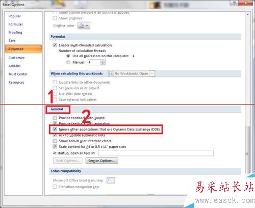 6、第一步看到 General 的這個選欄,第二步把 Ignore other applications that use Dynamic Data Exchange (DDE) 勾掉,第三部按OK就行了。中文也有對應的“常規”——“同意使用其他應用程序動態數據庫交換(DDE)”——點擊確認