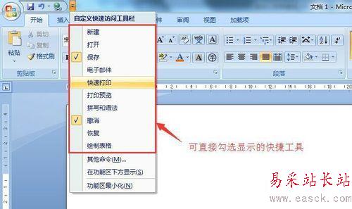 使用office過程中,總有幾個按鈕是我們經常使用的,如果總是到對應菜單下去查找,未免太過麻煩。office提供快速訪問工具欄,提供office中各種工具按鈕的快速訪問。