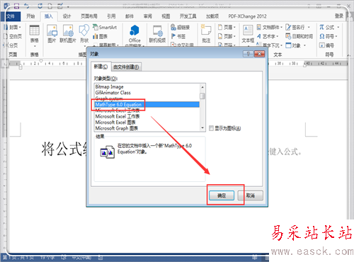 4、找到MathType,點擊選中,然后點擊”確定“。